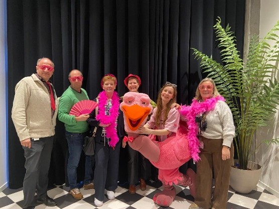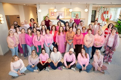 Van een ‘pink positivity wall’ tot een driedaagse receptie met roze outfits, hapjes en drankjes, solidariteit was alom. Dit jaar konden deelnemers het zelfs tegen elkaar opnemen en in de prijzen vallen: voor de creatiefste ‘roze’ actie, de leukste foto en voor het grootste ingezamelde bedrag. Ze werden daarvoor beloond met, respectievelijk, een ereplaatsje op de Pink Ribbon-website en -nieuwsbrief, Pink Ribbon-petten en -t-shirts voor tien werknemers en een gratis bezoek van onze mascotte Sandy op de werkvloer.