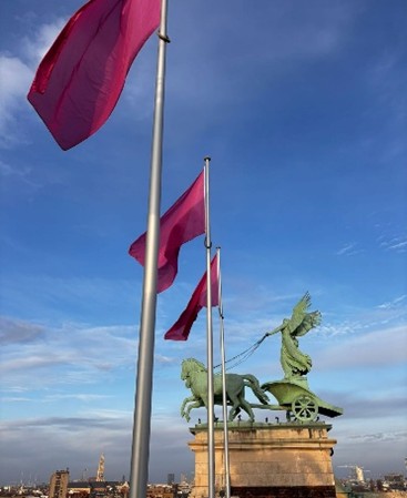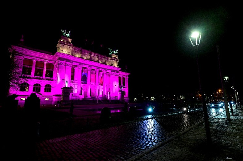 De Leopold de Waelplaats inAntwerpen kleurde roze door de vlaggen en de roze gevelverlichting van het KMSKA.De infoborden binnen in het museum toonden ook digitale KMSKA x Pink Mondaybanners en hun logo kleurde roze.