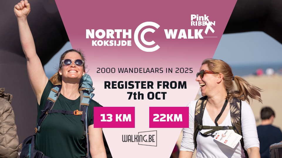 De eerste Pink Ribbon wandeling vindt plaats op 7 maart 2026. De North C Walk is een frisse, sportieve uitdaging langs de Belgische kust. Geniet van de gezonde zeelucht terwijl je 13 of 22km wandelt op grotendeels onverharde paden. Onderweg zijn er enkele stops voorzien om even bij te tanken. Voor de tweede wandeling trekken we naar het centrum van België. Aan de rand van Brussel kan je op 28 september 20km door het Zoniënwoud wandelen. Het heuvelachtige bos zorgt voor de nodige uitdaging.